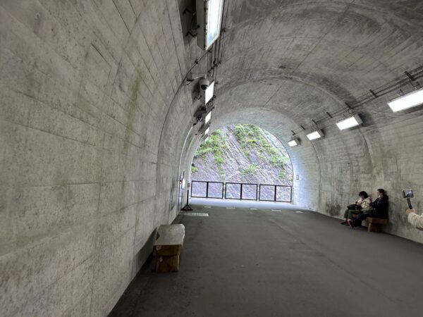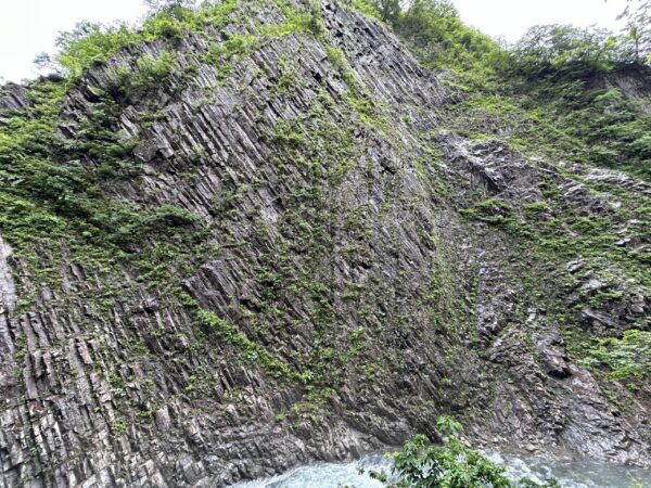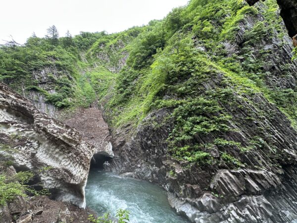 観光のために清津峡渓谷トンネルがあります。暗いトンネルを抜けるとアートな風景が広がり柱状節理が見事。